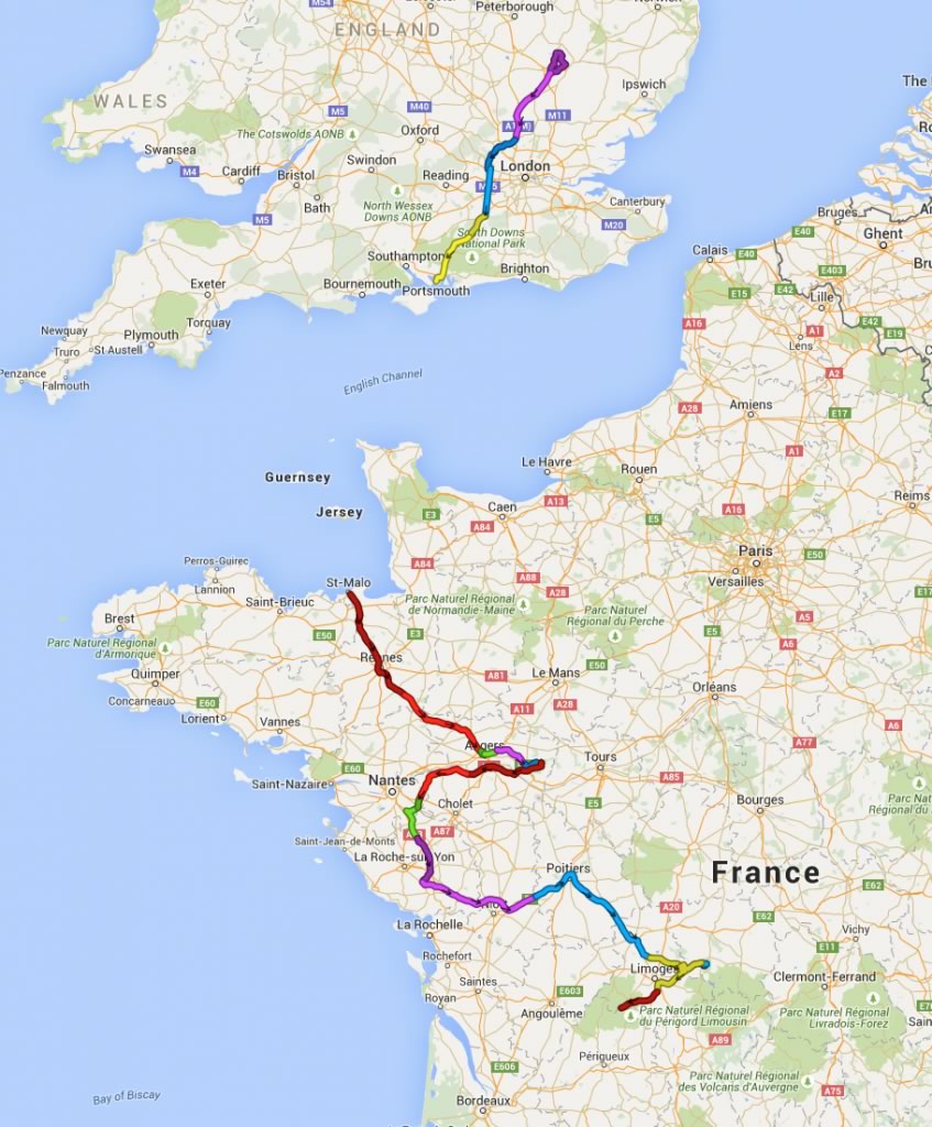 So tomorrow is the familiar and rather heart sink journey clockwise round the M25 from the A3 round to the A1, then dropping in somewhere on the way home to pick up some champaign to celebrate H and I’s 31st wedding anniversary. So far, nearly an hour into the channel, the crossing looks like it will be smooth, with hopefully a good night sleep.