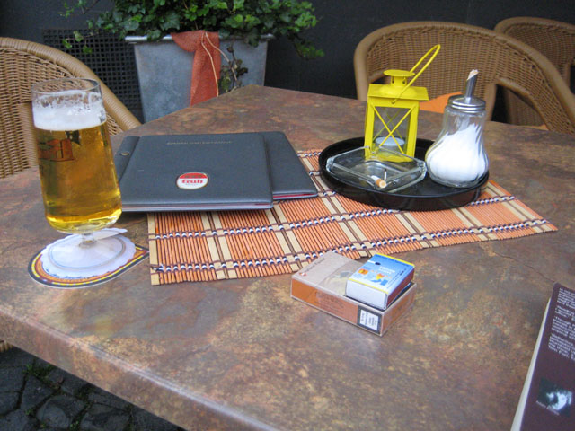 Finally I found a small bar where I could sit outside and drink a nice draft Bitburg and smoke a cigarette or two.