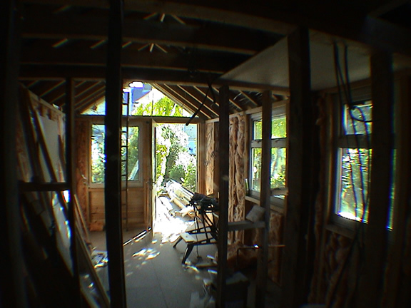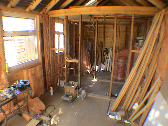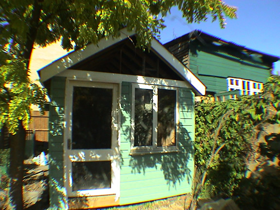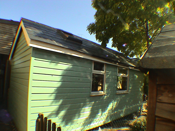 The roof is finished and the shiplap is painted with blue/green preservative.