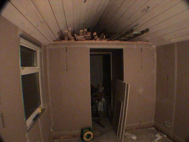 The walls are lined with 6X3 foot sheets of plasterboard which would fit